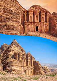 | Petra, Jordan Petra is an ancient city in southern Jordan, famously carved into red sandstone cliffs. It was the capital of the Nabataean Kingdom around the 4th century BCE and became a major trading hub connecting Arabia, Egypt, and the Mediterranean. Petra is renowned for its rock-cut architecture, including the iconic Treasury (Al-Khazneh), tombs, temples, and an impressive water management system. Hidden for centuries, it was rediscovered in the 19th century and is now a UNESCO World Heritage Site and one of the New Seven Wonders of the World, celebrated for its historical and architectural significance.